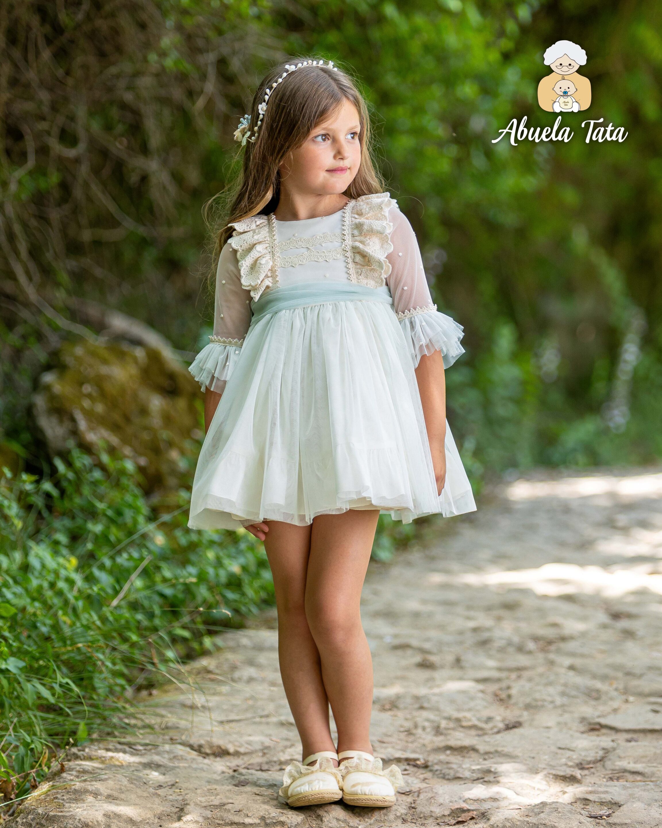 Este vestido de ceremonia de la firma Abuela Tata destaca por su delicadeza y su aire romántico.