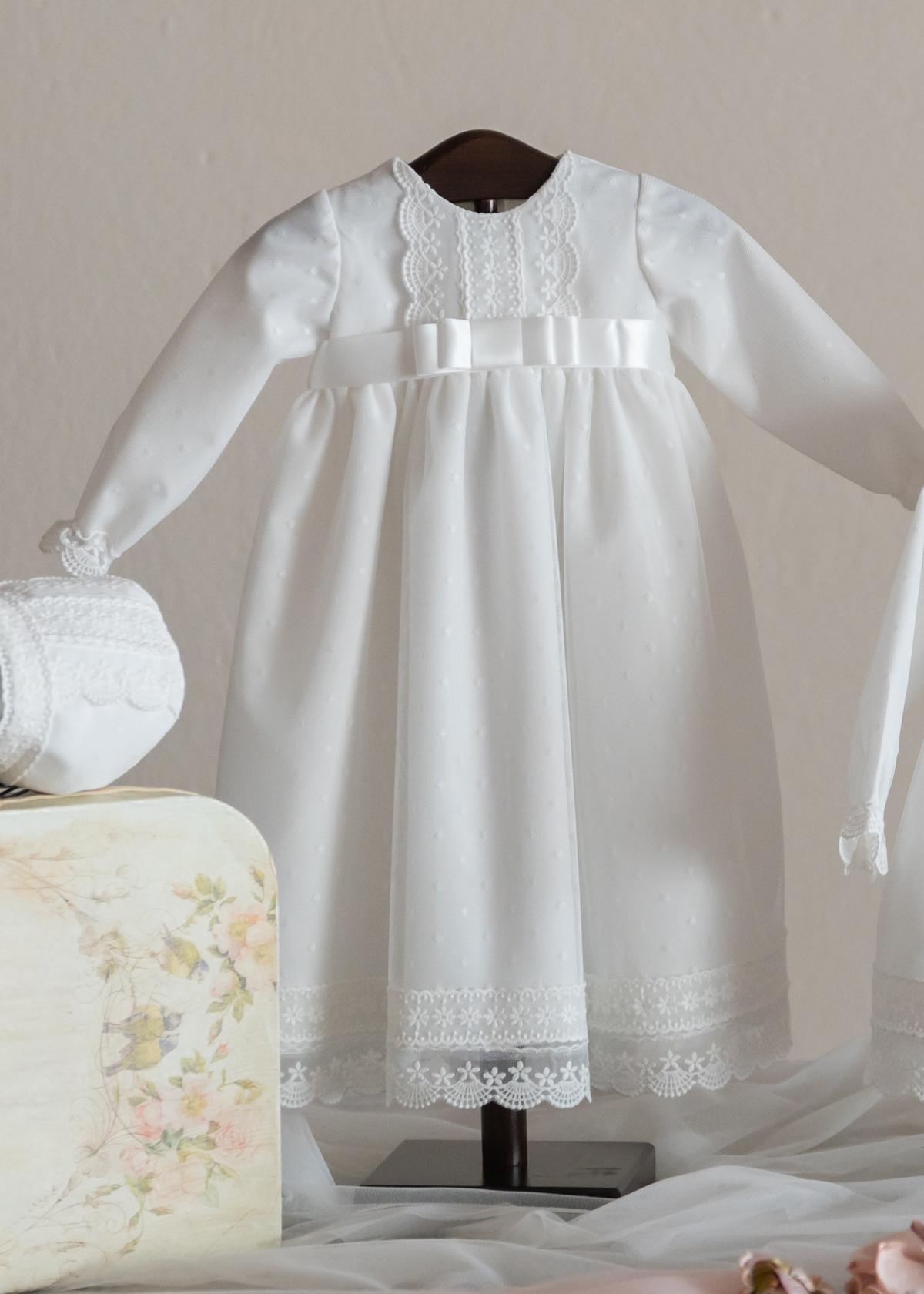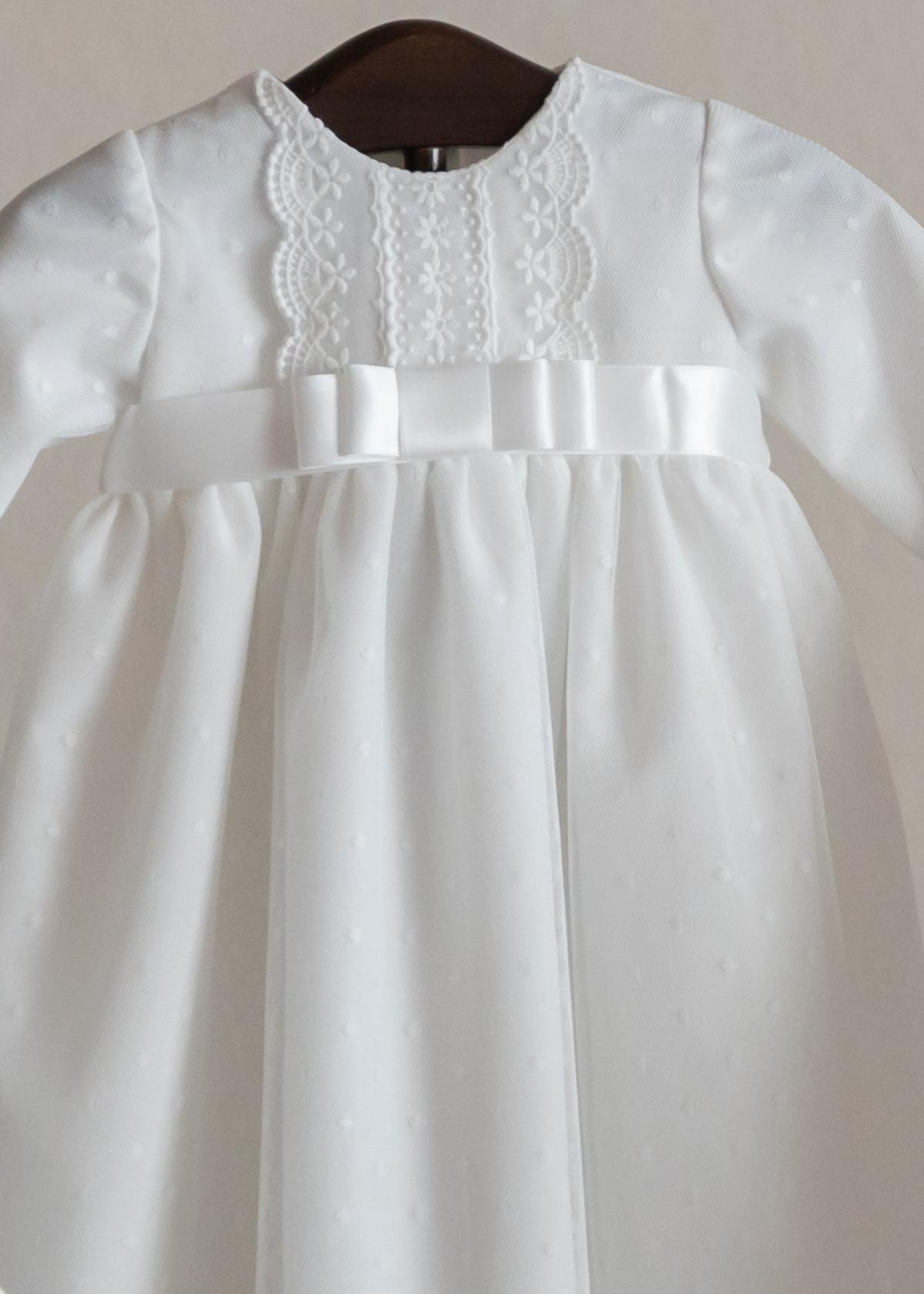 Precioso faldón para bautizo largo que se encuentra dentro de nuestra modelo 20002, confeccionado en tul de plumeti de muy alta calidad de color marfil. FABRICADO EN ESPAÑA.