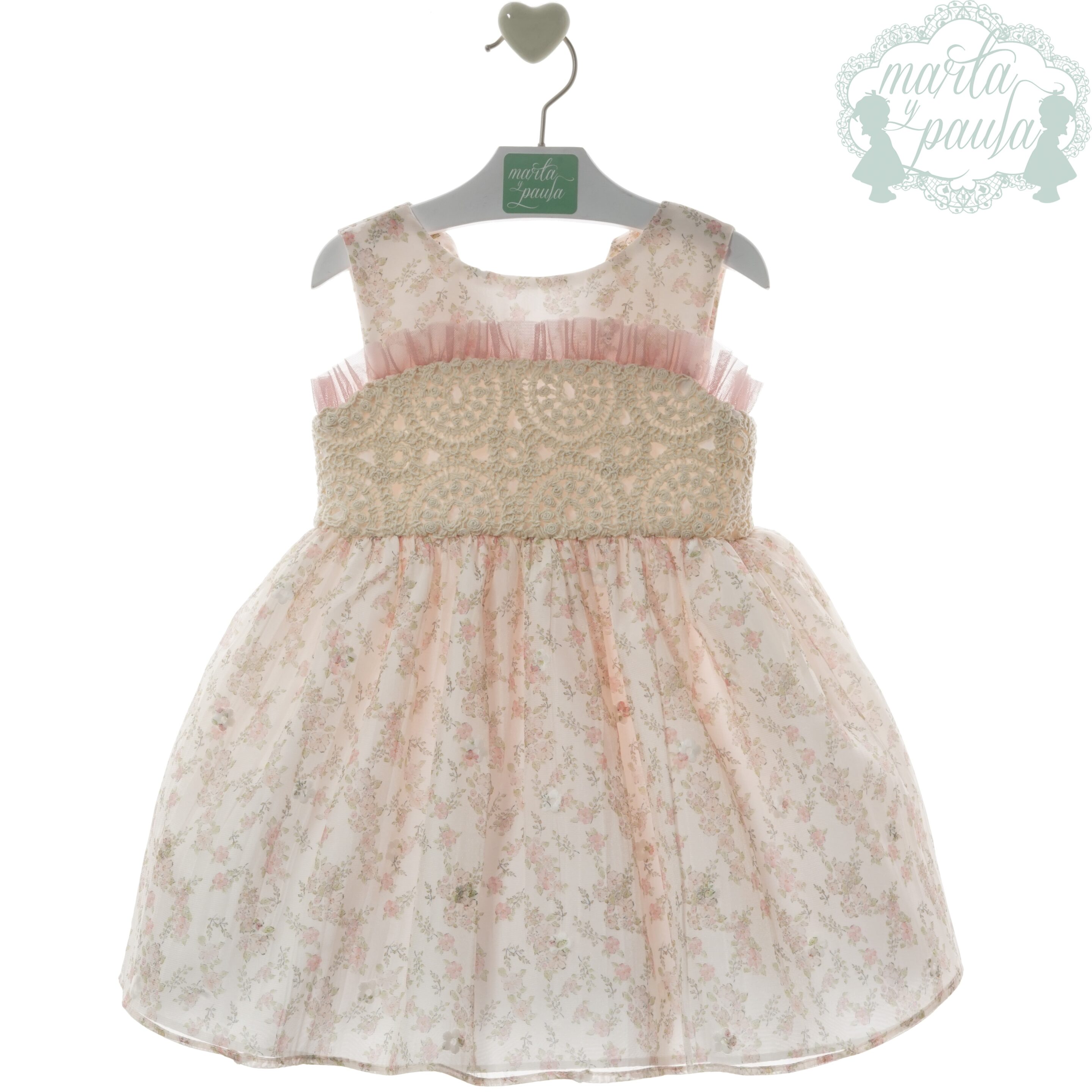 Vestido Ceremonia Niña Estampado Floral Rosa Empolvado Familia Geisha Primavera-Verano 2026 de Marta y Paula