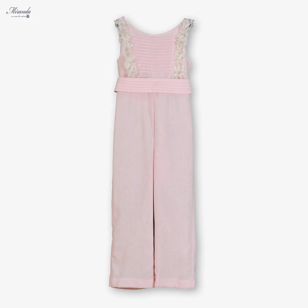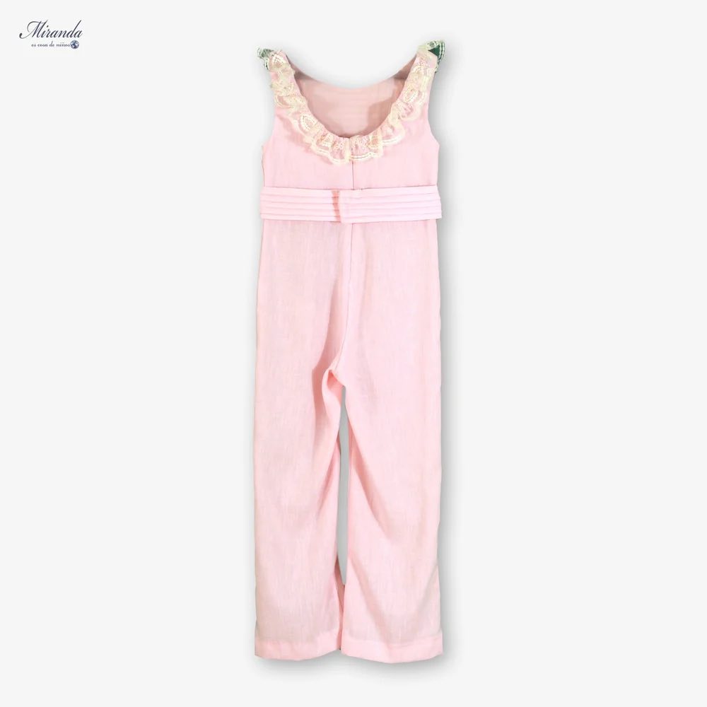 Miranda, Mono Niña Rosa con Encaje y Cinturón